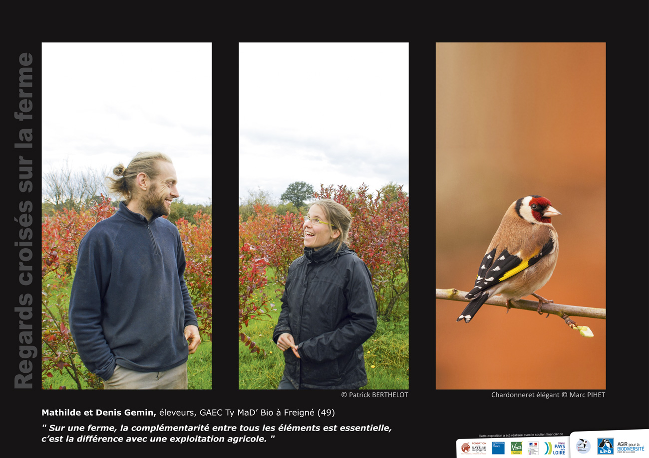 Leur ferme est composée de 32 ha de cultures (céréales pour l'alimentation de leurs poulets, myrtilles en libre cueillette) et de 35,5 ha de prairies dont 1 ha de prairies permanentes. Ils élèvent des poulets et des brebis.