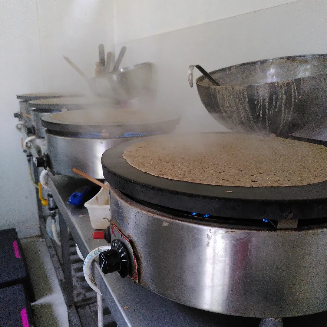 D'une part, elle cultive du blé noir qu'elle transforme en galettes vendues sur les marchés, à la ferme, dans les magasins bio, dans les évènements festifs...