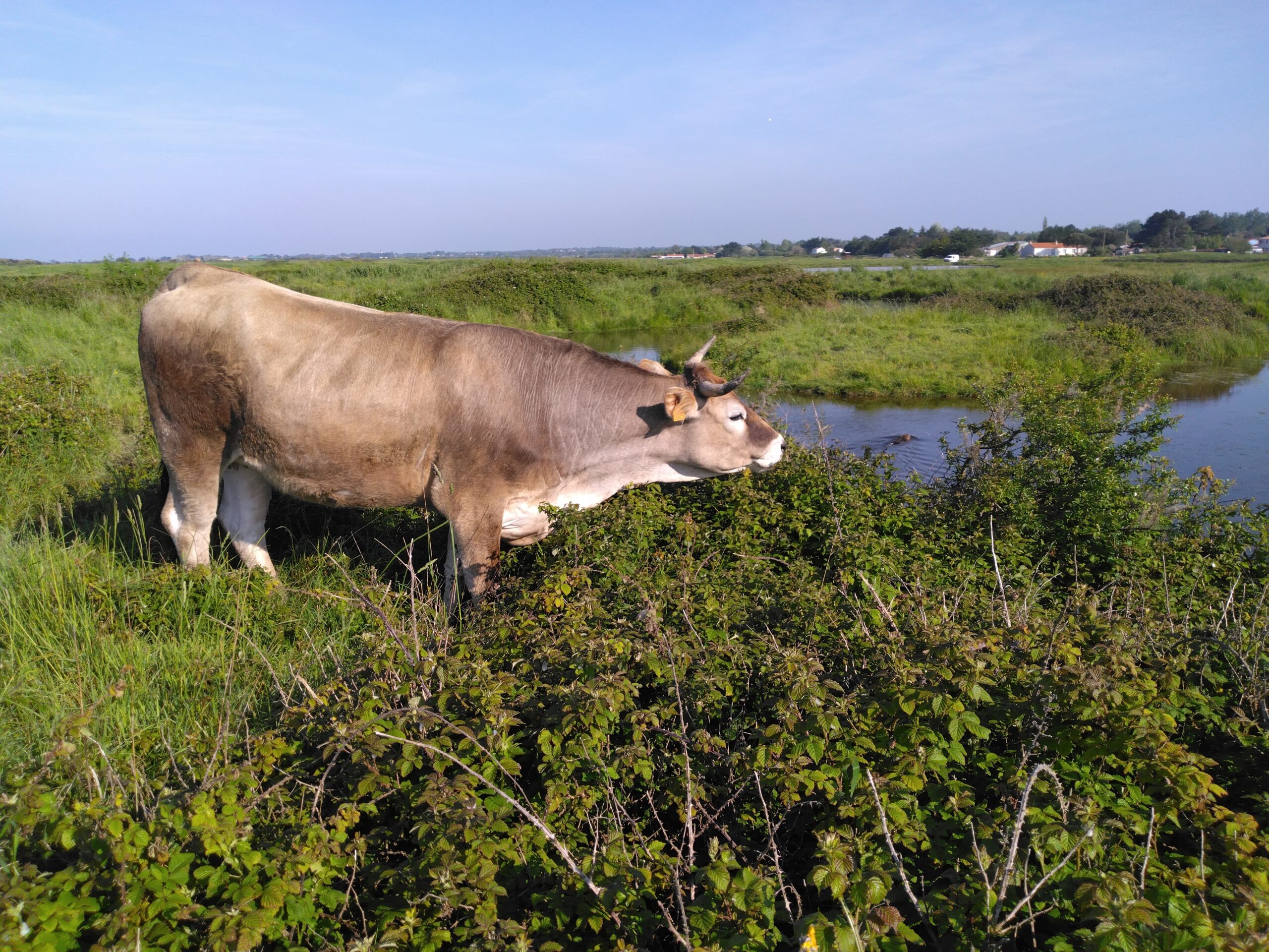- Des mares (essentielles en zone de marais salé pour l'abreuvement des bêtes autant que pour la biodiversité) ont été restaurées en laissant des pentes douces, et l'accès des vaches aux mares est partiel pour limiter le piétinement.